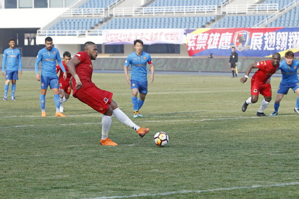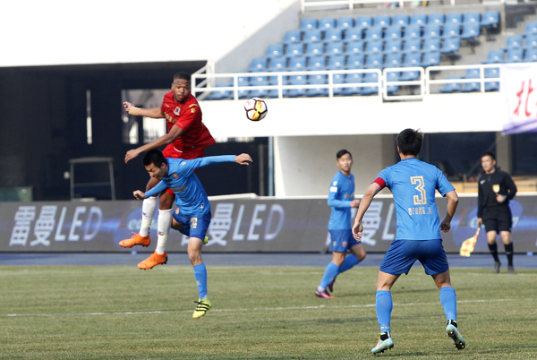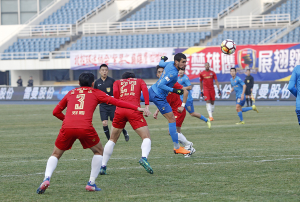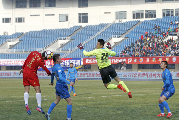 3月10日,2018中国足球甲级联赛第一轮北控燕京队和浙江毅腾队的比赛在奥体中心体育场举行,主场作战的北控燕京队以3:0大胜浙江毅腾队,首场取得开门红。