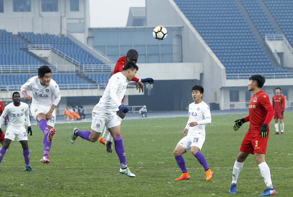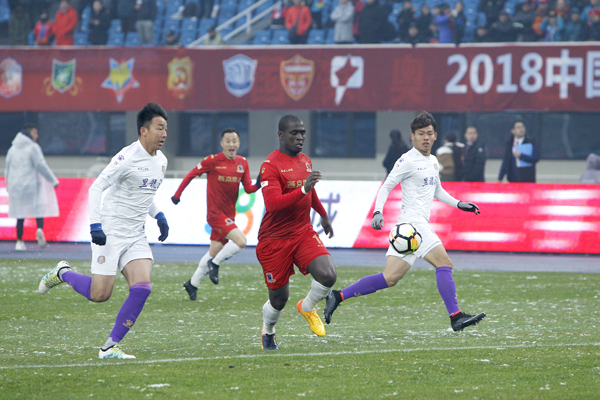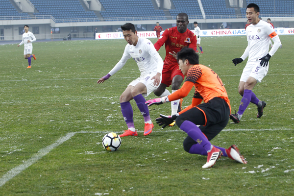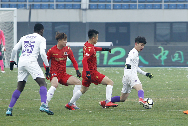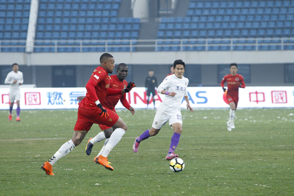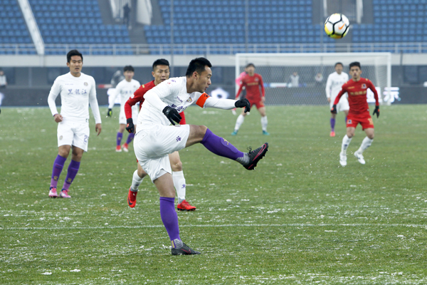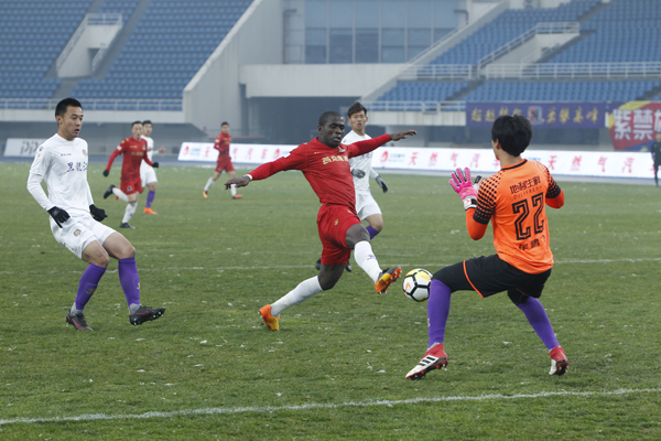 3月17日,2018中国足球甲级联赛第二轮北控燕京队和黑龙江FC队的比赛在奥体中心体育场举行。上半时双方互交白卷,下半场在黑龙江FC队被罚下一人的情况下,北控队抓住机会,戈武梅开二度,北控燕京队以2:0击败黑龙江FC队,主场取得两连胜。